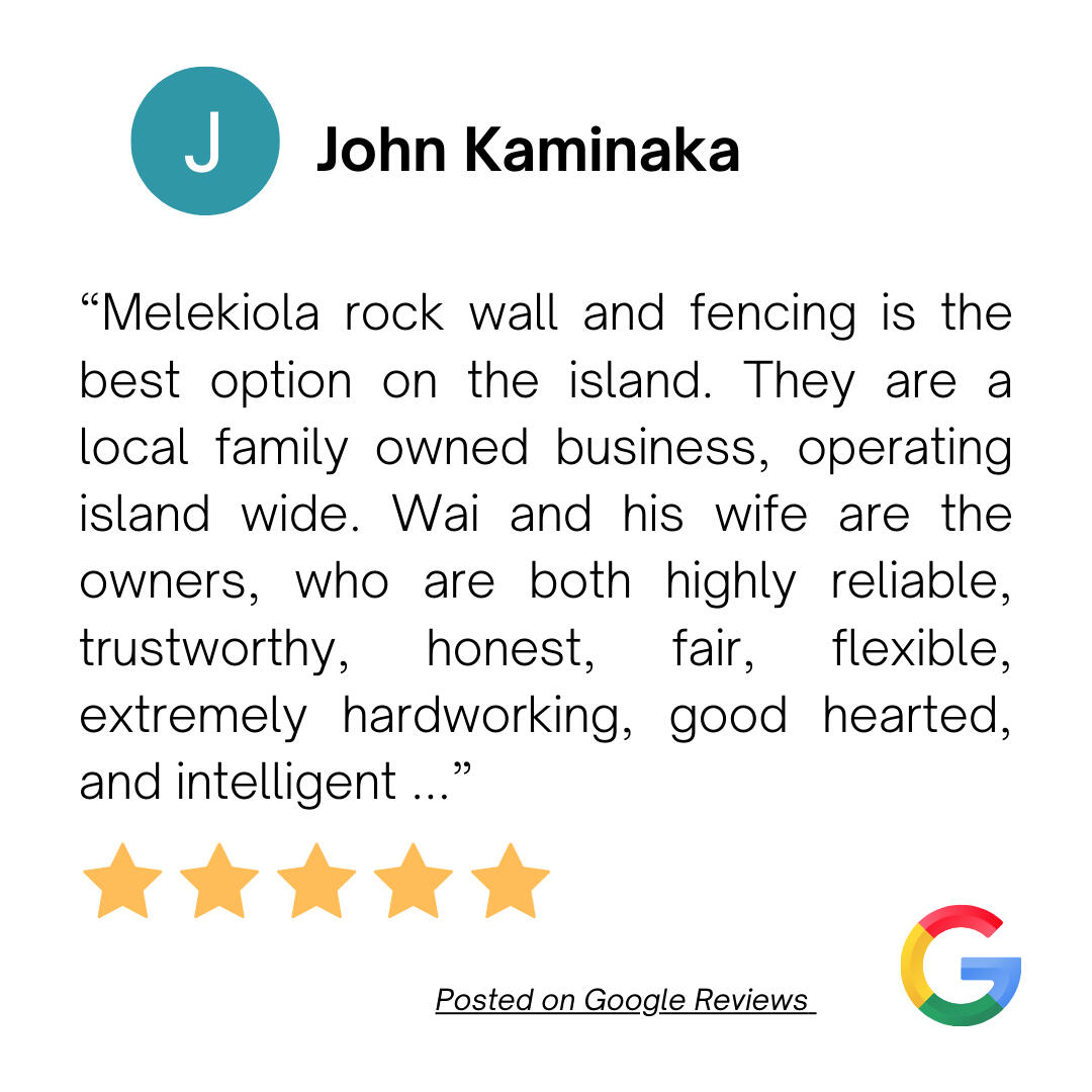 With years of experience and a dedication to craftsmanship, Melekiola Rockwall & Fencing is a locally-owned company based in Hilo, Hawaii. Since our founding in 2020, we’ve built a strong reputation for creating sturdy, beautiful rock walls and reliable fencing solutions. Whether you need a decorative stone wall, a functional retaining wall, or a custom fence for privacy and security, we have the expertise to bring your vision to life.We are committed to using the best materials, traditional construction techniques, and modern methods to ensure that every project is completed to the highest standards. Your satisfaction is our priority, and we aim to exceed your expectations with every job we undertake.